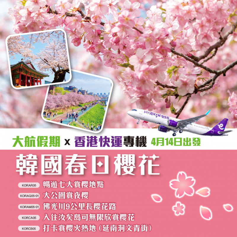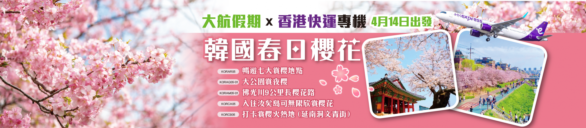 大航假期 X 香港快運專機 江原道春日櫻花 仁川大公園 雪嶽山國立公園賞櫻 江原道秘景 鏡蒲台 春川衣岩湖畔公園 佛光川9公里長櫻花路5天