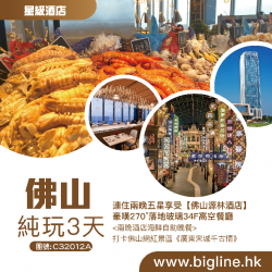 【星級酒店】連住兩晚 五星享受【佛山源林酒店】豪嘆270°落地玻璃34F高空餐廳<兩晚酒店海鮮自助晚餐> 特別安排酒店<美食水療會> 打卡佛山網紅景區《廣東宋城千古情》尋味順德至尊美食 純玩3天