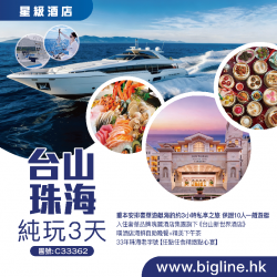 【星級酒店】重本安排豪華遊艇海釣約3小時私享之旅 保證10人一艏遊艇 入住奢華品牌瑰麗酒店集團旗下《台山新世界酒店》嘆酒店海鮮自助晚餐+精美下午茶 33年珠海老字號【任點任食精緻點心宴】純玩3天