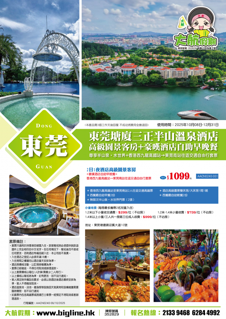 10.如套票內包含高鐵票或跨境巴士車票一經預定不得取消或者辦理退款。