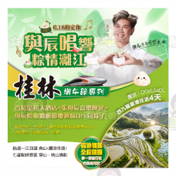 CKWL04DL - 端午節#6.18桂林專列【與辰唱響 粽情灕江】香格里拉酒店包場<張與辰音樂晚宴>專場陪你DIY包粽子(3晚連住桂林)龍脊梯田<輕鬆抵達觀景平台+拍攝旅行vlog>船遊一江四湖 堯山<纜車往返>純玩4天