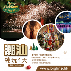 C39082 - <12.25西九龍直達潮汕聖誕專列>重本安排『非遺潮韻聖誕夜』賞三大非遺表演「潮汕英歌舞、打鐵花、舞火龍」潮遊潮食汕頭、潮州 、揭陽三地 高鐵純玩3天