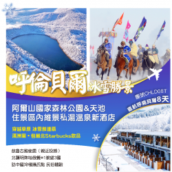 CHLD08T - 冰雪勝景 直航呼倫貝爾 「阿爾山國家森林公園 入住景區內維景私湯温泉新酒店」冰雪那達慕 ·滿洲里▪包最北Starbucks飲品 敖魯古雅使鹿(親近投餵)北疆明珠塔俄餐*1眼望3國 民俗體驗8天