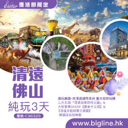 C36325 - 【復活節限定】激玩樂園~來清遠遇見非洲 重本安排玩轉 三大主題『清遠長隆森林王國』&大型實景SHOW【廣東千古情】&【清遠古龍峽雲天玻霸】 嘆酒店自助晚餐 純玩3天