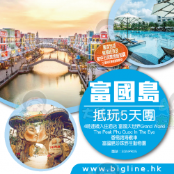 SGNPR05 - 富國島 4晚連續入住酒店 香島跨海纜車 富國珍珠野生動物園 富國大世界Grand World The Peak Phu Quoc In The Eye <團費包機場稅及燃油附加費>
