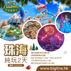 C25029 - 【聖誕節限定】重本包超級海洋主題公園《珠海長隆海洋王國》&長隆“海洋聖誕夜大巡遊”+“海洋幻彩煙花秀”特別安排【橫琴灣酒店點心午餐】+【蠔門盛宴海鮮自助餐(任食生蠔)】純玩2天