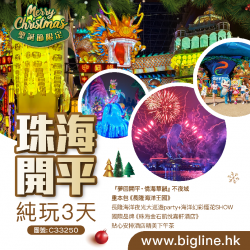 C33250 - 【聖誕節限定】聖誕狂歡『夢回開平・僑海華韻』不夜城 重本包《珠海長隆海洋王國》長隆海洋夜光大巡遊party+海洋幻彩煙花SHOW 國際品牌《珠海金石凱悅嘉軒酒店》 貼心安排酒店精美下午茶 純玩3天