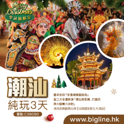C39082 - <12.25西九龍直達潮汕聖誕專列>重本安排『非遺潮韻聖誕夜』賞三大非遺表演「潮汕英歌舞、打鐵花、舞火龍」潮遊潮食汕頭、潮州 、揭陽三地 高鐵純玩3天