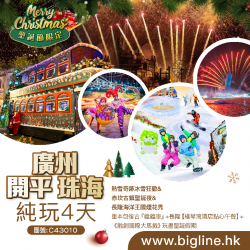 C43010 - 【聖誕節限定】熱雪奇跡冰雪狂歡&赤坎古鎮聖誕夜&長隆海洋王國煙花秀 重本包復古『鐺鐺車』+長隆【橫琴灣酒店點心午餐】+《融創國際大馬戲》玩盡聖誕假期 純玩4天