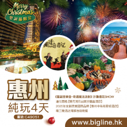 C49051 - 【聖誕節限定】《聖誕音樂會~蒙面派對》沙灘煙花SHOW 連住兩晚【雙月灣日出銀沙鹽晶酒店】2025年全新開業國際品牌【惠州中海希爾頓酒店】嘆三晚酒店海鮮自助晚餐 純玩4天