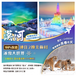 漠河 100%連住2晚北極村 冰雪大世界 香港直航長春 「北極追光 雪地溫湯泉 KTV燒烤」聖誕村 娛雪樂園<馬拉扒犁 冰上捕魚>淨月潭限定“藍冰”虎林園(乘圍籠車) 鄂溫克馴鹿園 品鮮活帝王蟹 8天
