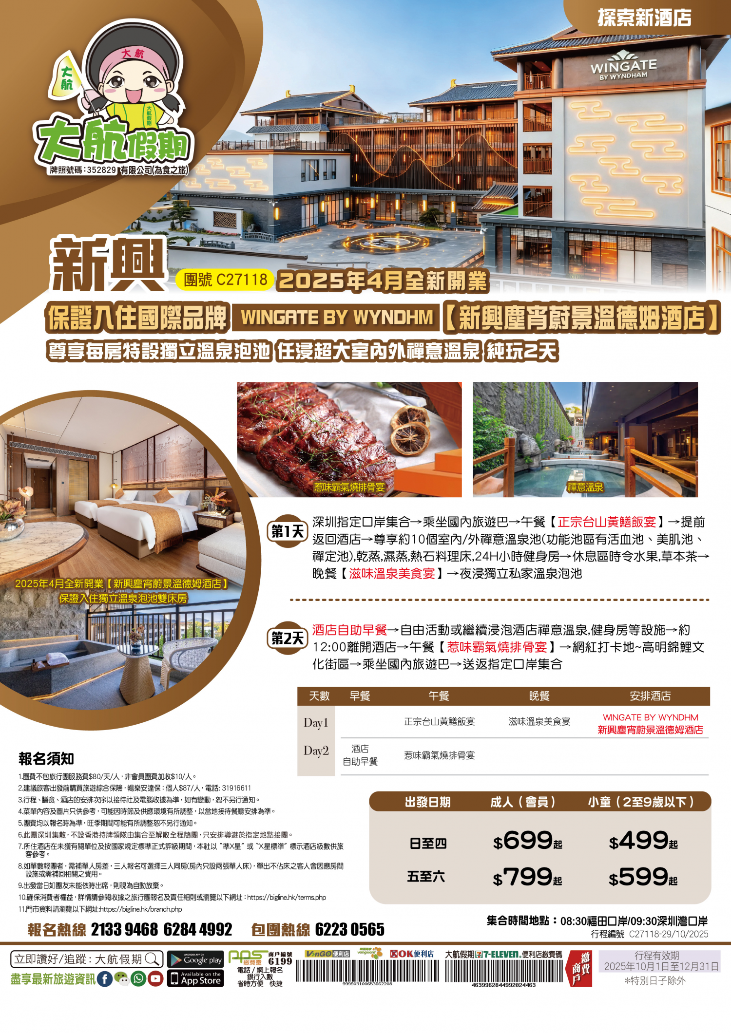 5. 非香港集散一天團, 不列入旅遊業賠償基金及緊急援助保障。本公司強烈建議顧客出發前購買旅遊保險,以獲得更全面的旅遊保障。