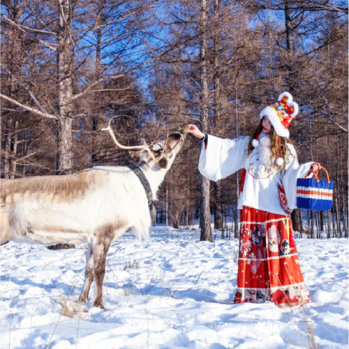 .D3:「冷極村冰雪活動」贈送滑雪圈、抽冰尜、冰雪爬犁、冰上保齡球、冰上龍舟等冰上活動、體驗“潑水成冰”-- “使鹿部落”鄂溫克民族「敖魯古雅」與聖誕老人坐騎“馴鹿”零距離接觸、投餵馴鹿 --「俄羅斯轟趴館」欣賞手風琴演繹 俄羅斯歌曲欣賞+遊戲 -- 晚餐品嘗烤全羊「開羊儀式 蒙古族歌手表演」