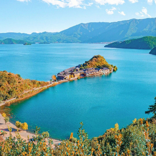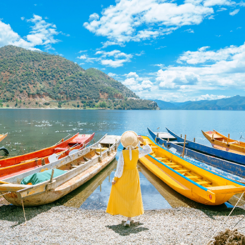 酒店~昆明站搭乘動車至大理~【理想邦·雲南聖托里尼】大理洱海浪漫打卡地~(BUS約4h)瀘沽湖~登上觀景台,打卡藍色愛心湖,遙望女神山~自由選擇參與【摩梭篝火晚會】~(視乎當日實際理想天氣狀態下)觀賞瀘沽湖璀璨星空