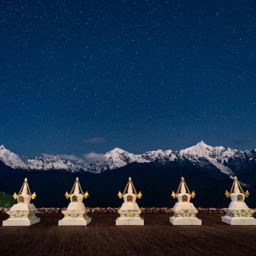 酒店~【飛來寺觀景台】觀賞梅里十三峰,(視乎當日實際理想天氣狀態下)"日照金山"時刻~(BUS約4h)~香格里拉心中的聖地"小布達拉宮"【松讚林寺】(包含景區環線巴士)~漫步【獨克宗古城】龜山公園巨型轉經筒