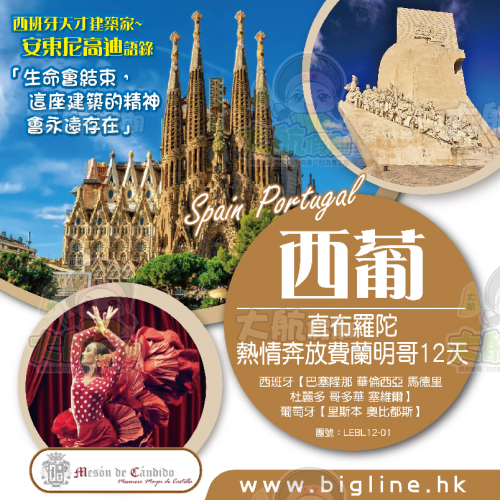 西葡 直布羅陀 <<熱情奔放費蘭明哥12天>> 西班牙【巴塞隆那 華倫西亞 馬德里 杜麗多 哥多華 塞維爾】葡萄牙【里斯本 奥比都斯)