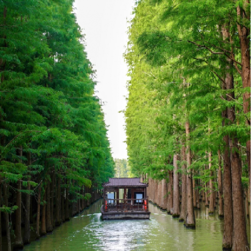 早餐後→【仙桃夢里水鄉(車程約2H)包畫舫遊十二花島】穿梭與池杉濕地公園,欣賞古箏古琴演奏,包電瓶車)→乘車前往秭歸茅坪碼頭,登船辦理入住——開啟浪漫舒適的長江三峽之旅