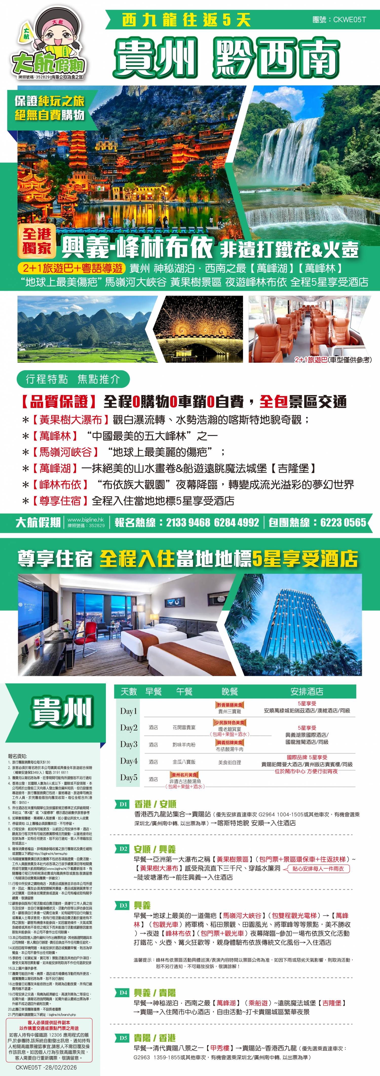 貴州 黔西南 【《全港獨家景點》興義 • 峰林佈依 非遺打鐵花&火壺 】 <2+1旅遊巴+粵語導遊>萬峰湖 萬峰林 馬嶺河大峽穀 黃果樹景區 全程5星享受酒店高鐵5天