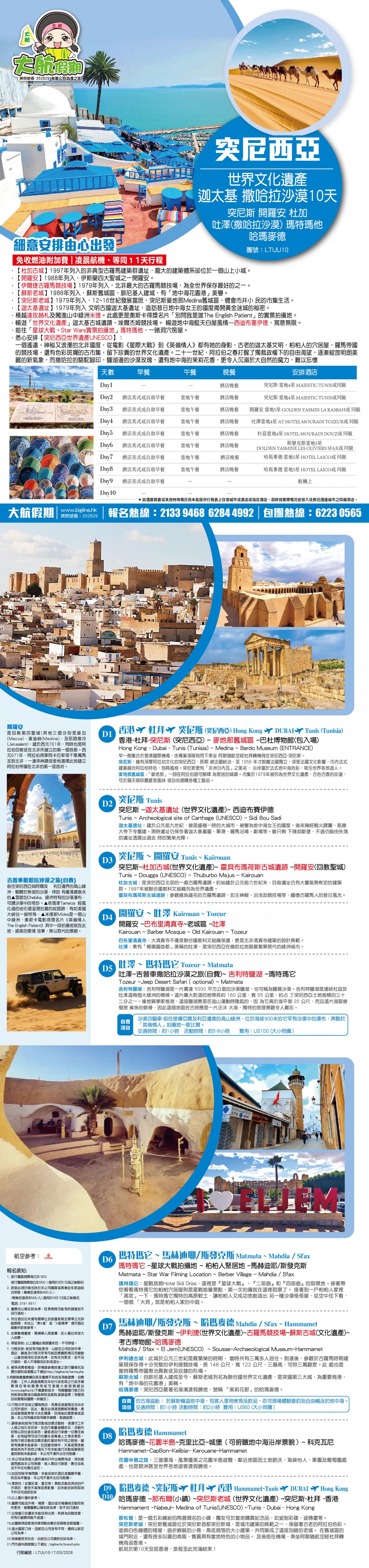 哈瑪麥德 ~那布爾(小鎮) ~突尼斯老城 (世界文化遺產) ~突尼斯-杜拜 -香港