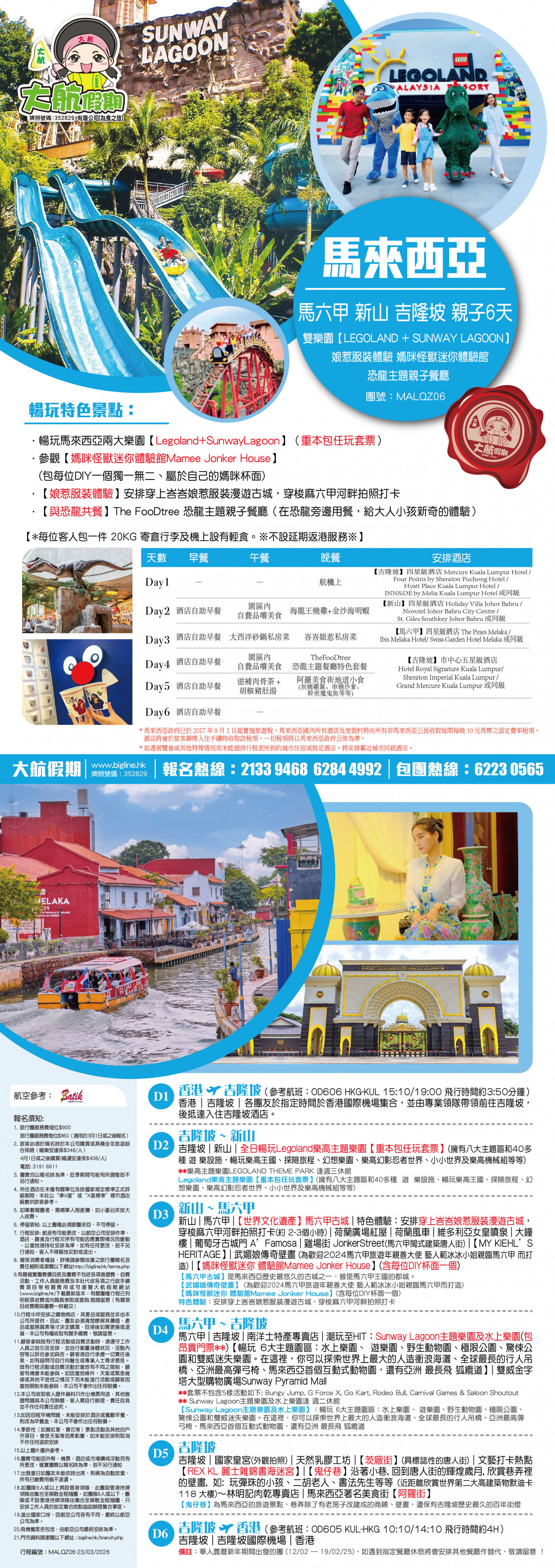 馬六甲~新山~全日暢玩Legoland樂高主題樂園【重本包任玩套票】(擁有八大主題區和40多種 遊 樂設施,暢玩樂高王國、探險旅程、幻想樂園、乐高幻影忍者世界、小小世界及乐高机械组等等)