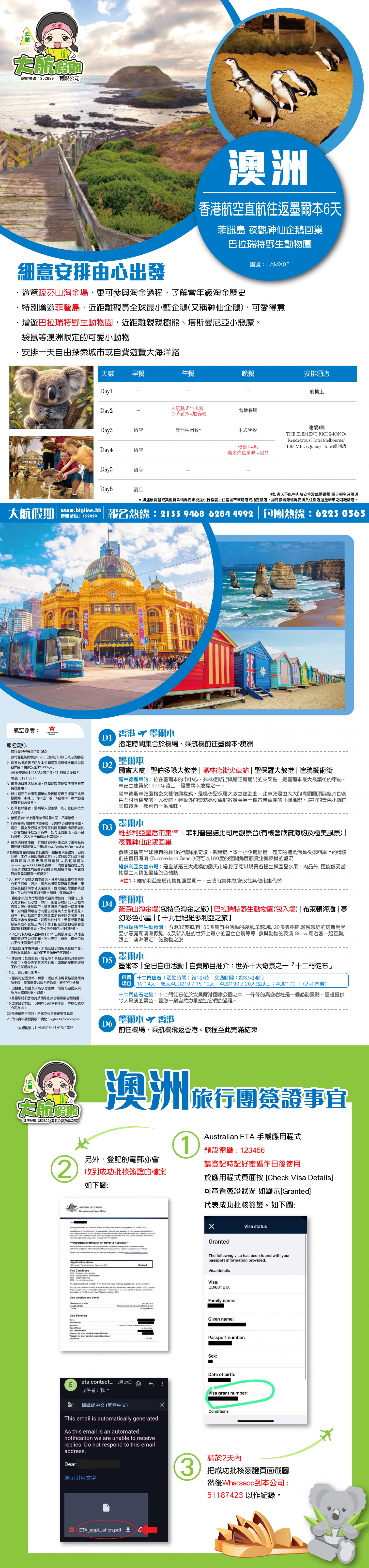 指定時間集合於機場、乘航機前往墨爾本-澳洲