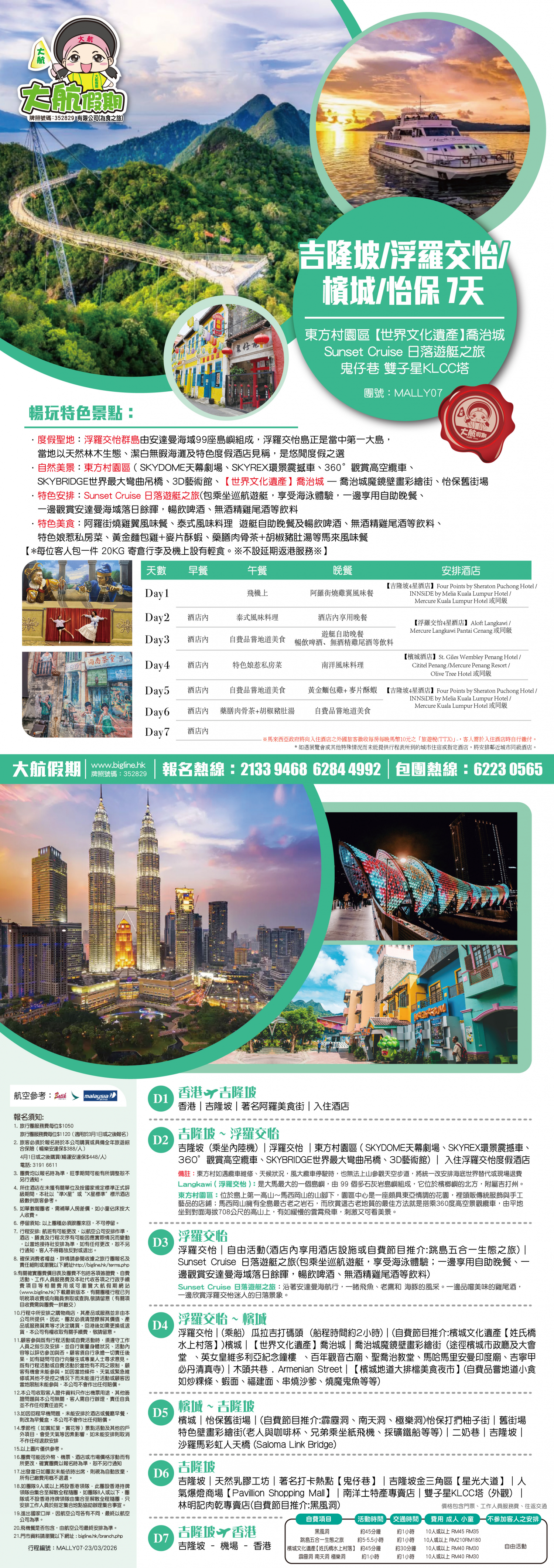 【吉隆坡、浮羅交怡、檳城、怡保7天】東方村園區【世界文化遺產】喬治城 Sunset Cruise 日落游艇之旅 鬼仔巷 雙子星KLCC塔