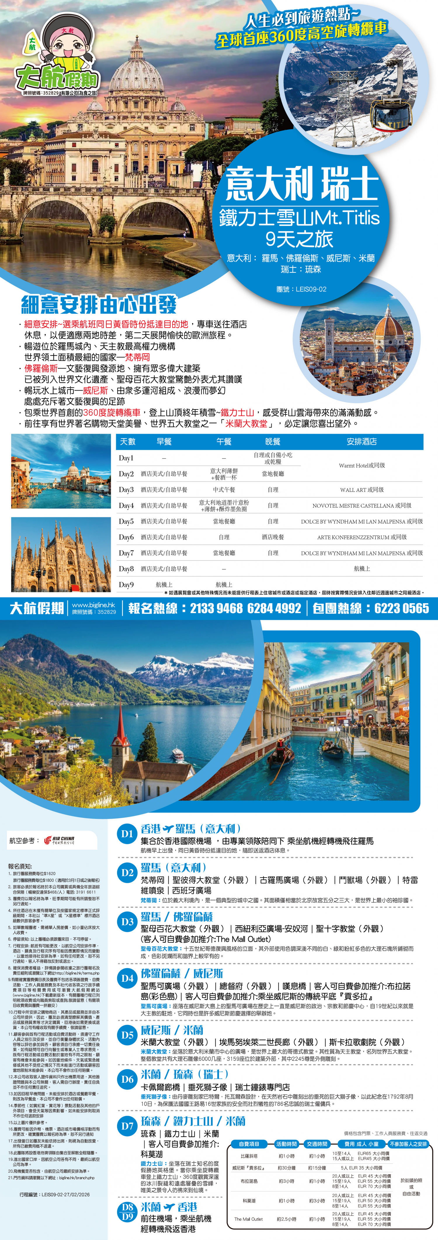 意大利 瑞士鐵力土雪山 9天之旅 << 意大利:羅馬、佛羅倫斯、威尼斯、米蘭 // 瑞士:琉森 >>