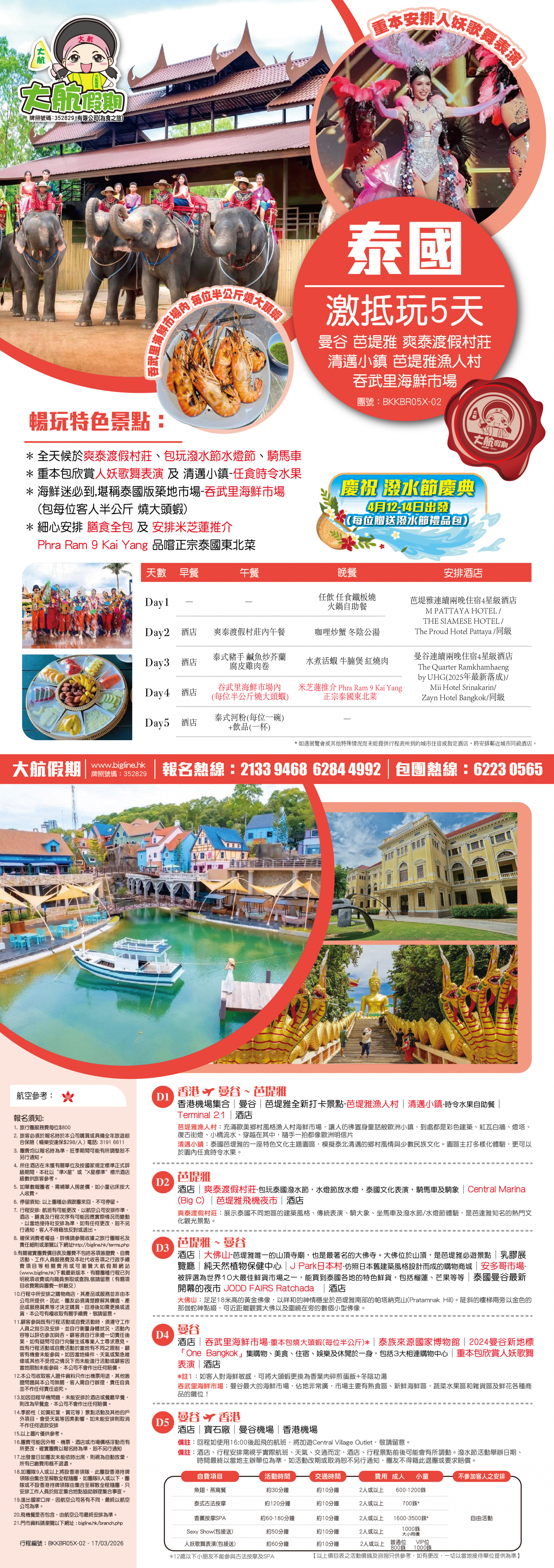 香港機場集合 | 曼谷 | 芭堤雅全新打卡景點-芭堤雅漁人村 | 清邁小鎮:時令水果自助餐Terminal 21 | 酒店