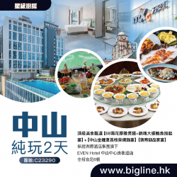 【星級廚房】頂級美食甄選【68兩花膠雞煲翅+銷魂大蝦鮑魚撈起宴】+【中山金鐘罩荔枝柴燒鵝宴】【嶺南御品家宴】保證洲際酒店集團旗下《EVEN Hotel 中山中心逸衡酒店》全程食足6餐 純玩2天