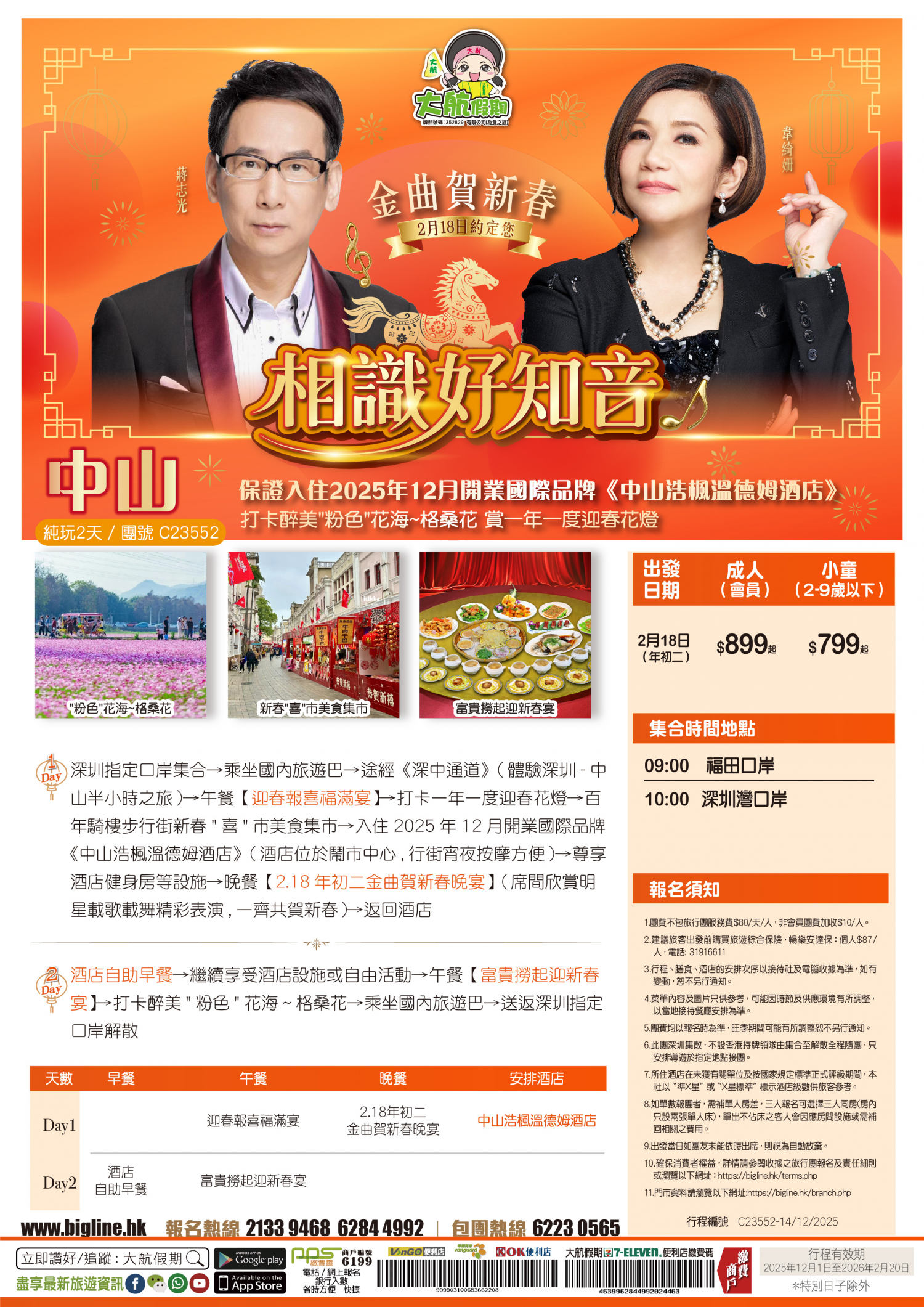 新春(廣東省短線)8人以上再減$30((2月17-20日年初一到初四出發之團隊)