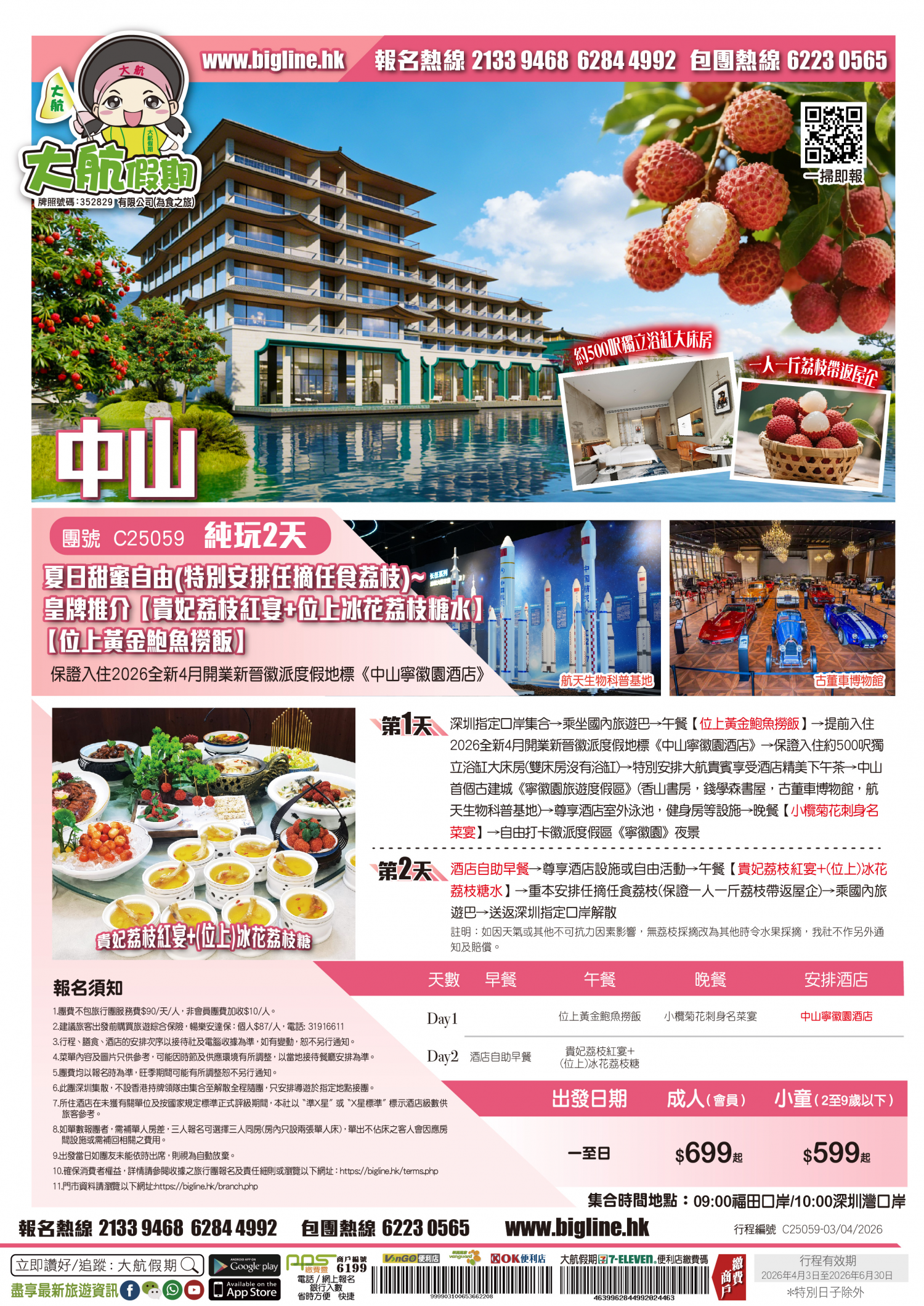| 第2天 | 酒店自助早餐 | 貴妃荔枝紅宴+(位上)冰花荔枝糖水 |