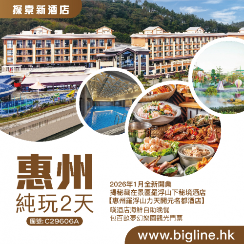 【探索新酒店】2026年3月全新開業鬧市中心國際品牌《中山中心華邑酒店》保證入住35樓以上約450呎客房 豪嘆【酒店47樓海鮮自助晚餐】皇牌推介<位上冰鎮菊花(六頭)鮑魚><鴻運荔枝柴鳳凰宴>純玩2天