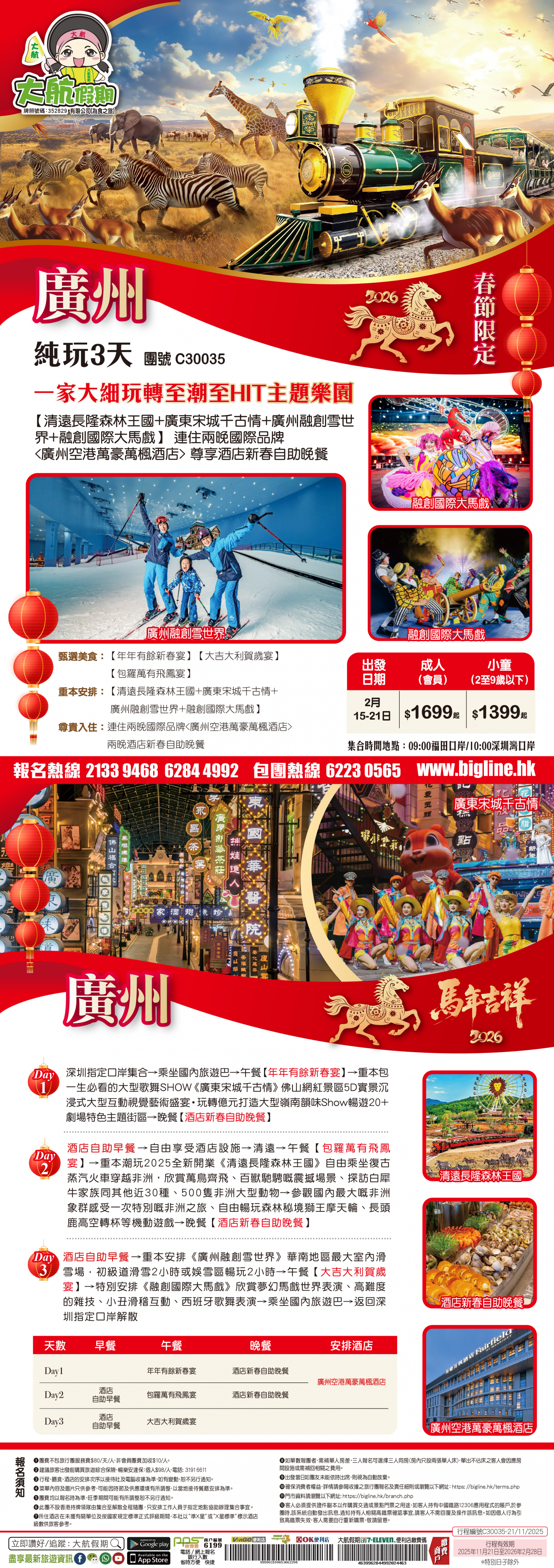 新春(廣東省短線)8人以上再減$30((2月17-20日年初一到初四出發之團隊)