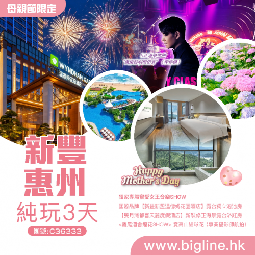 【5.9獨家專場寵愛女王音樂SHOW 】國際品牌【新豐新盟溫德姆花園酒店】露台獨立泡池房 +【雙月灣都喜天麗度假酒店】重新裝修正海景露台浴缸房<雞尾酒會煙花SHOW> 賞高山繡球花(專業攝影師航拍)