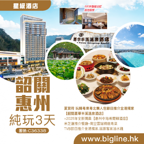【星級酒店】夏賞荷 全港獨家【韶關嘉華半溪溫泉酒店】+2025年全新開業【惠州中海希爾頓酒店】米芝蓮推介餐廳~高空雲端精緻粵菜 TVB節目推介全港獨家.翁源客家油水雞 純玩3天