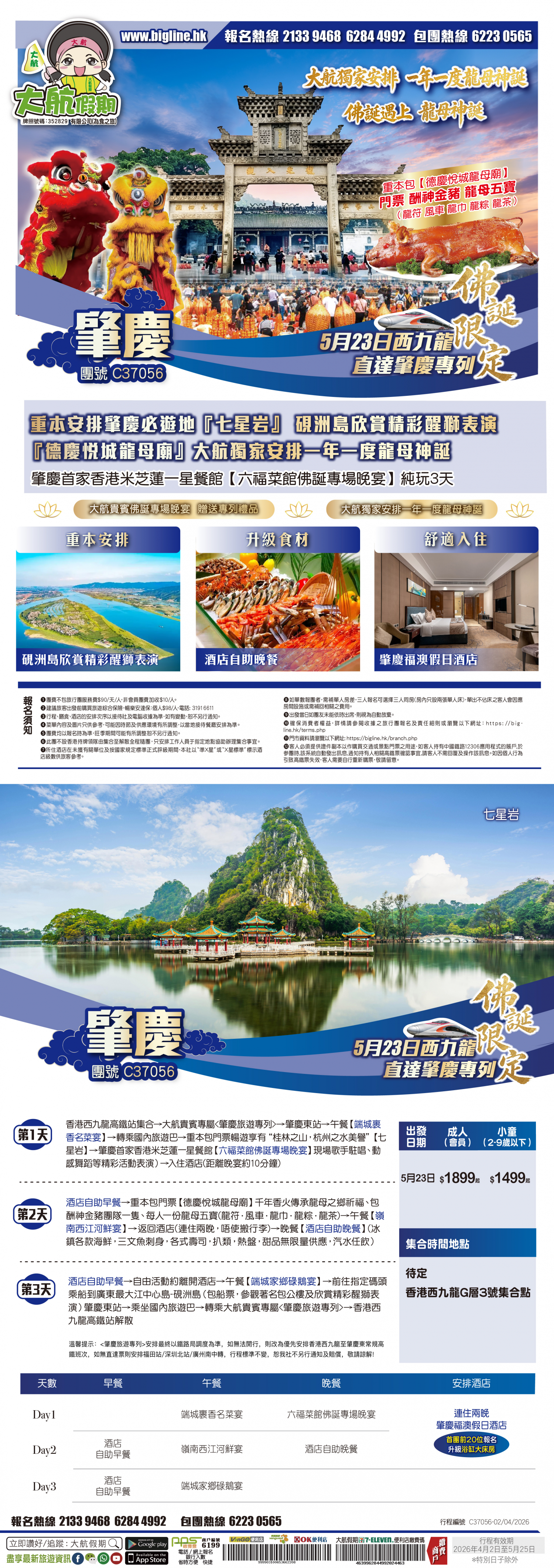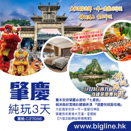 【5.23西九龍直達肇慶專列】重本安排肇慶必遊地 『星湖遊船』 登七星之一【仙掌岩】 打卡暢遊 網紅5公里威尼斯超長泳道 國際品牌 『肇慶喜來登酒店 』嘆酒店自助晚餐純玩3天