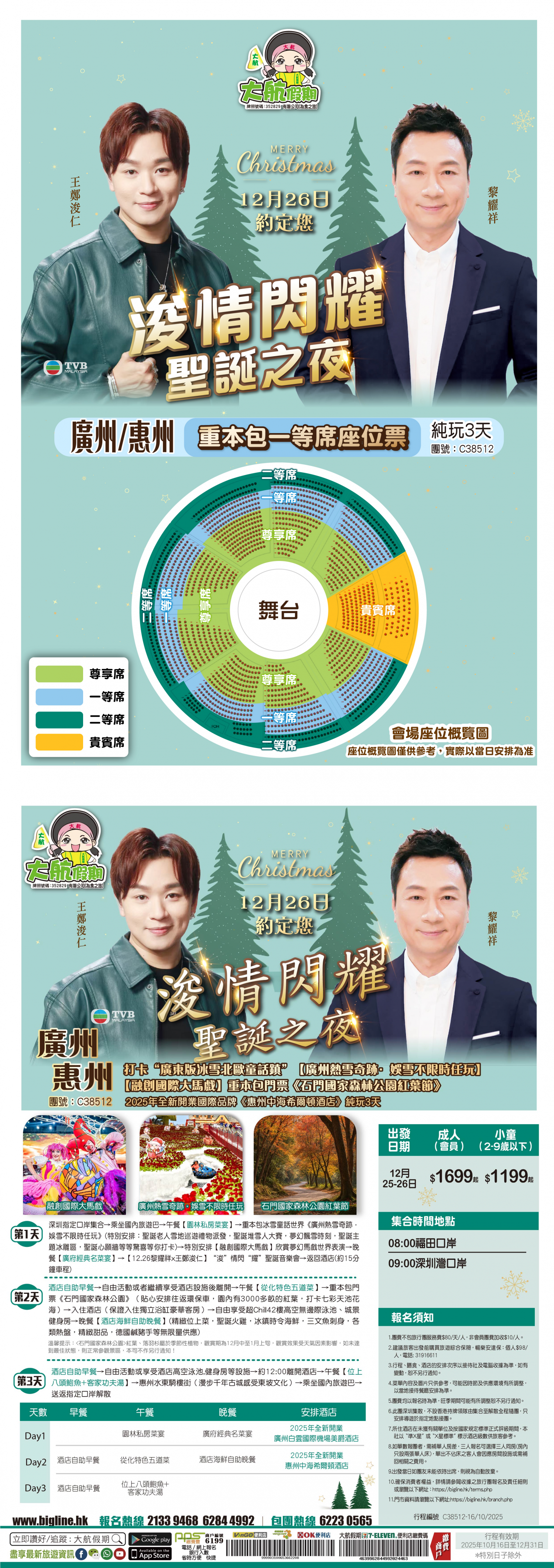 【12.26 黎耀祥x王鄭浚仁】《尊享席座位票》重本玩轉4大至HIT熱點 2025年全新開業『清遠長隆森林王國』『廣東宋城千古情』『廣州熱雪奇跡·滑雪娛雪2選1』『融創國際大馬戲』純玩3天