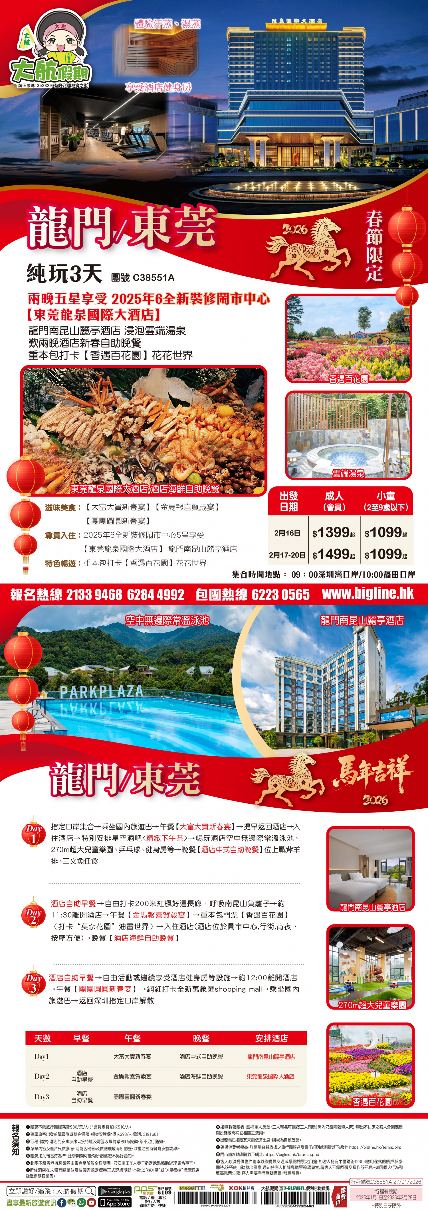 | 第2天 | 酒店自助早餐 | 金馬報喜賀歲宴 | 酒店自助晚餐 | 東莞龍泉國際大酒店 |