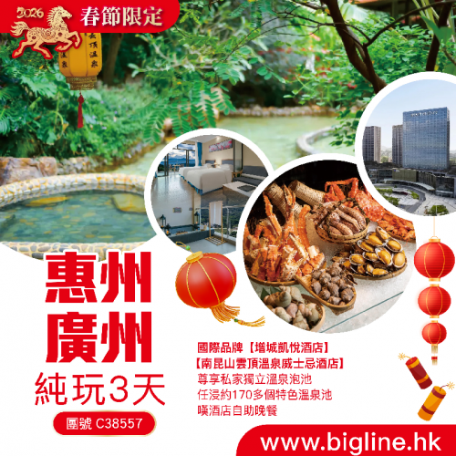 | 第1天 | 步步高升賀歲宴 | 酒店自助晚餐 | 惠州南昆山雲頂溫泉度假村 | |