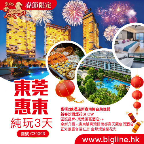 【春節限定】兩晚國際品牌 【惠州佳兆業鉑爾曼酒店】+【東莞松山湖華美達廣場酒店】 嘆兩晚酒店新春海鮮自助晚餐 一年一度金燦燦油菜花 夜遊打卡【一年一度西湖迎春燈會】純玩3天