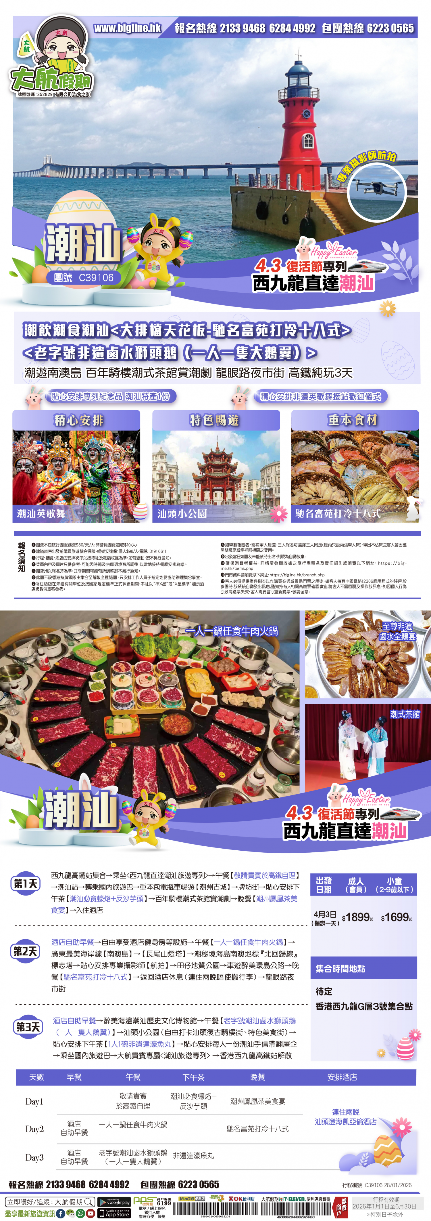 | 第3天 | 酒店自助早餐 | 澄海滷水獅頭鵝宴+1人1隻大鵝翼 |