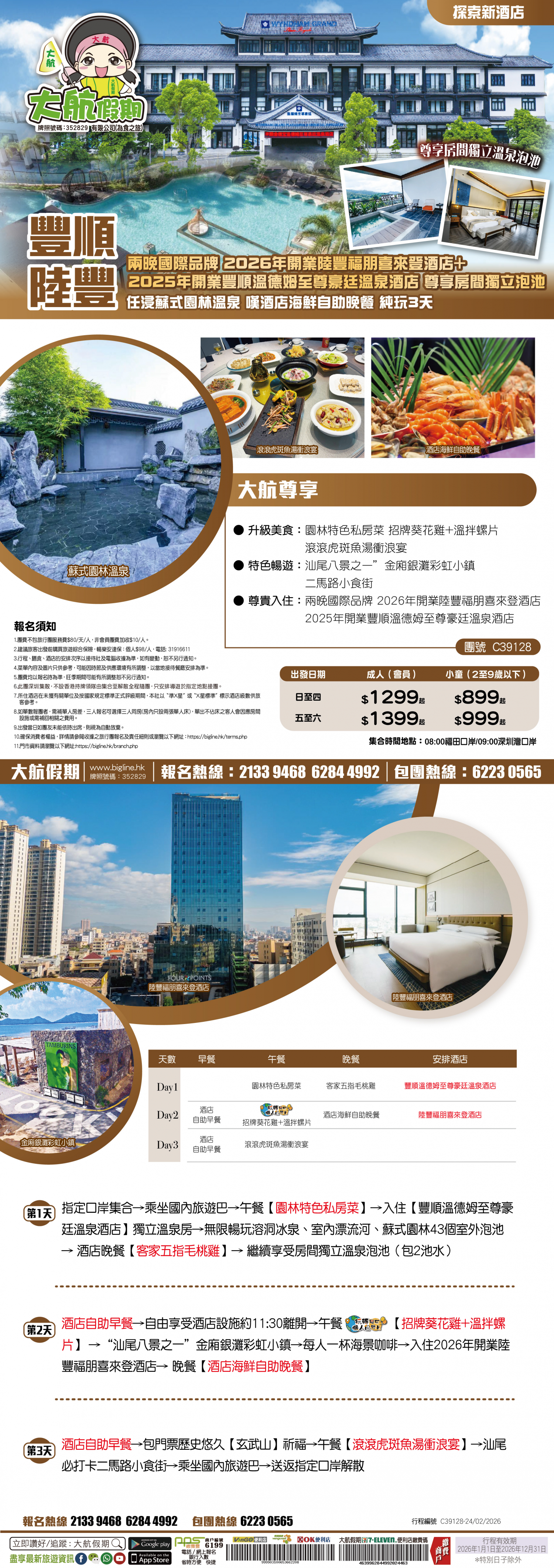 【探索新酒店】兩晚國際品牌 2026年開業陸豐福朋喜來登酒店+2025年開業豐順溫德姆至尊豪庭溫泉酒店 尊享房間獨立泡池 任浸蘇式園林溫泉 嘆酒店海鮮自助晚餐 純玩3天