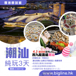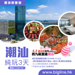 【4.3西九龍直達潮汕復活節專列】連住兩晚國際品牌CROWNE PLAZA<潮州騰瑞皇冠假日酒店><復活節主題酒店自助晚餐> <位上海皇蟹肉翅+芝士烤河鰻 > 潮州古城 重本包門票廣濟橋 純玩3天