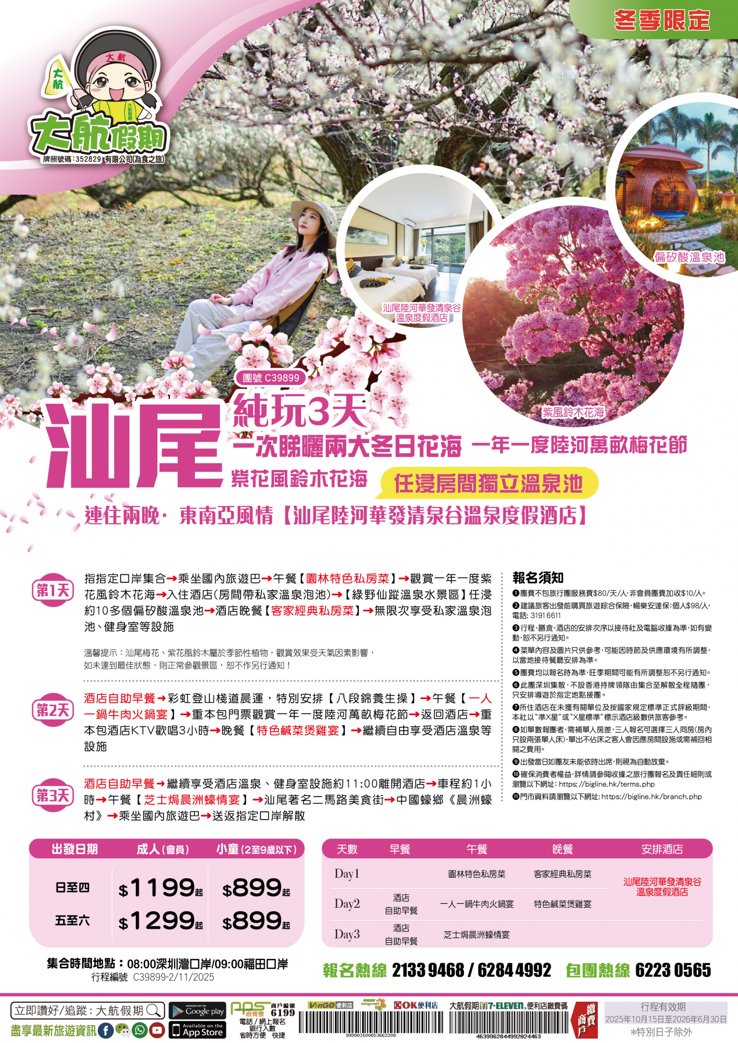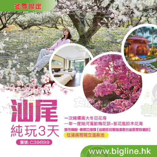 【冬季限定】兩大冬日花海《一年一度陸河萬畝梅花節》+《紫花風鈴木花海》 連住兩晚·東南亞風情【汕尾陸河華發清泉谷溫泉度假酒店】 任浸房間獨立溫泉池 純玩3天