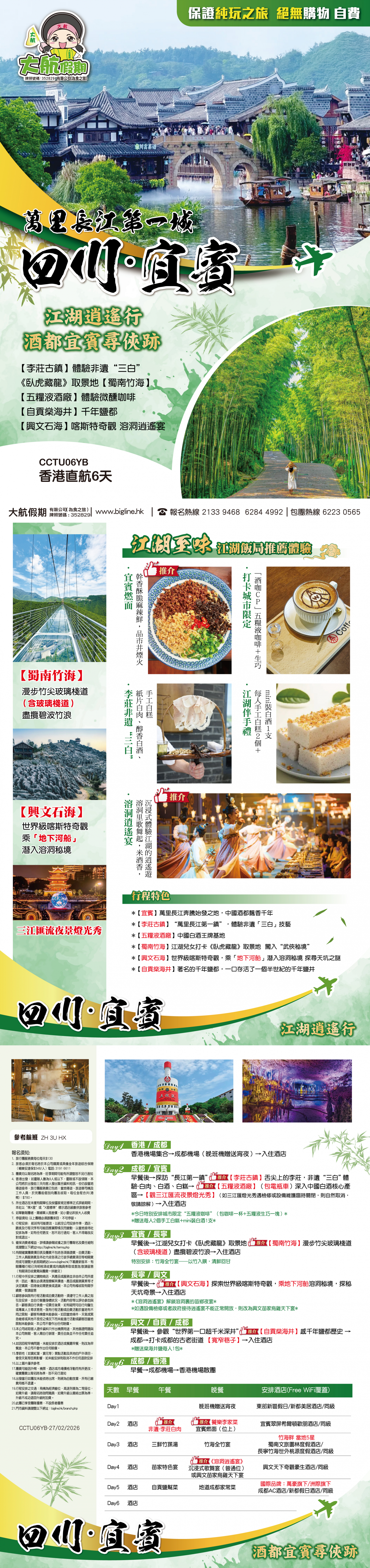 【四川宜賓 · 江湖逍遙行】“萬里長江第一鎮”【李莊古鎮】【蜀南竹海】「臥虎藏龍」取景地 【五糧液酒廠】品微醺咖啡 【興文石海】溶洞逍遙宴 【自貢燊海井】成都直航6天
