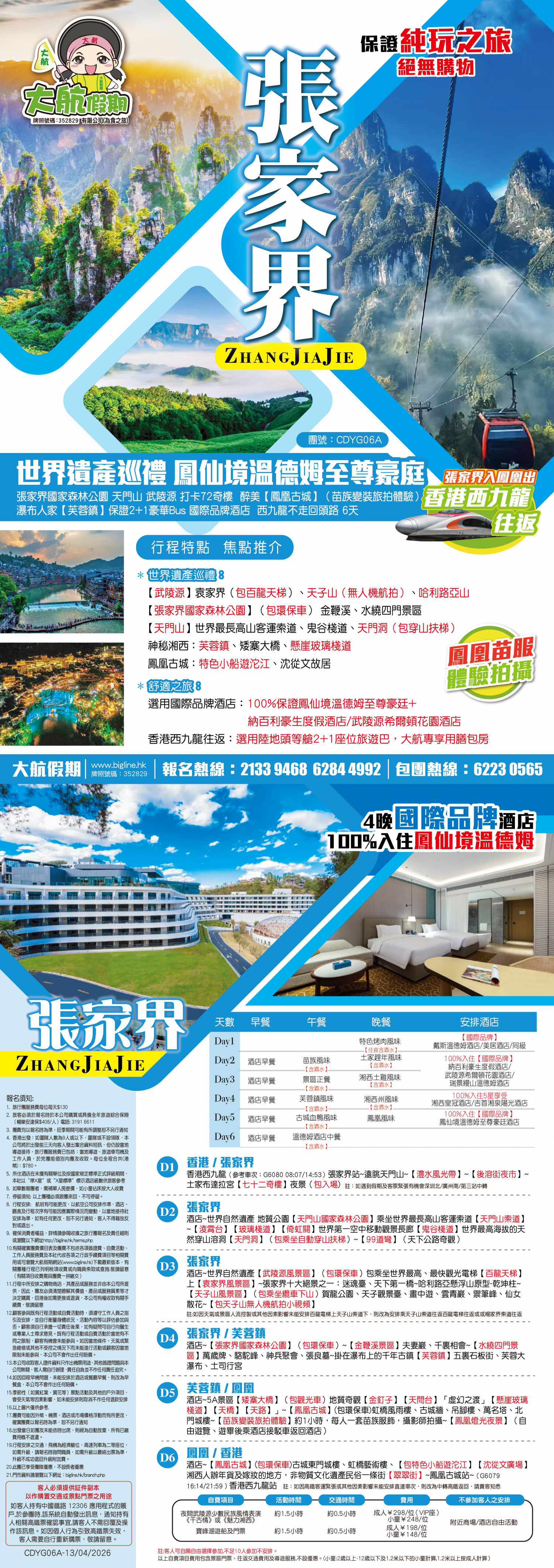 《西九直達張家界*鳳凰返》 #粵語導遊#2026推出「全港雙獨家」《“神仙民宿”山水澗·德夯雅苑 古城觀景位下午茶》張家界森林公園 鳳凰古城<VIP通道 苗族變裝旅拍>德夯苗寨 免稅纯玩5天