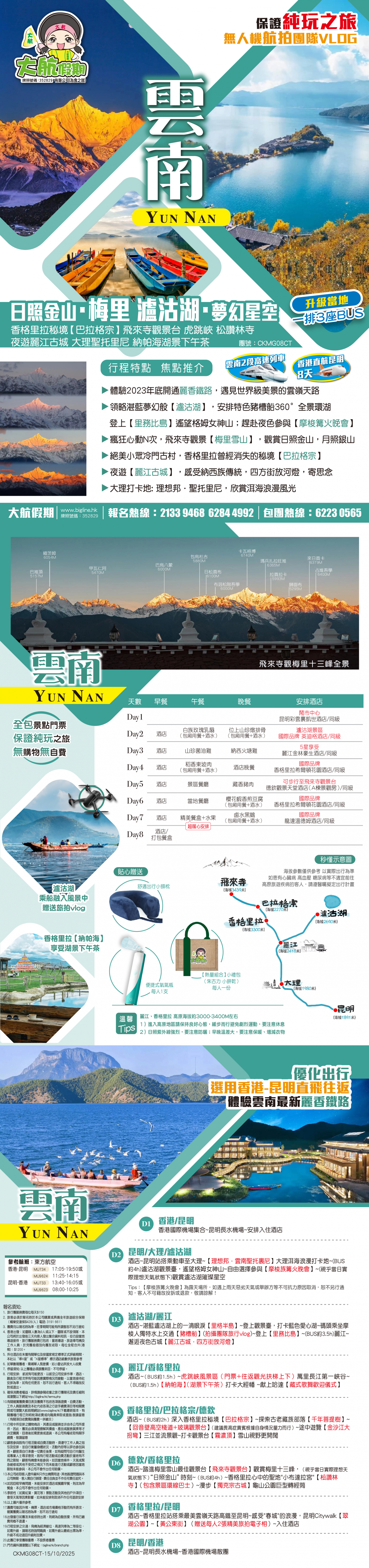 雲南【昆明鮮花接機·大理洱海下午茶·麗江玉龍雪山<觀光火車>】全港獨家《大理古城內·五彩雲酒店》麗江古城旅拍<浮生山居下午茶> 夜遊大理古城 喜洲麥田小火車 海舌公園 昆明citywalk 直航6天