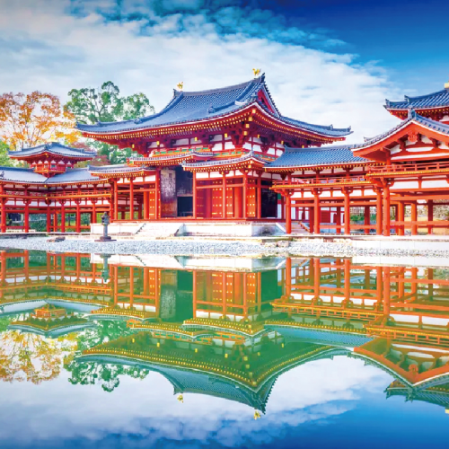 【世界遺產 ‧ 平等院 ‧ 鳳凰堂(包入園)】位於日本抹茶故鄉(宇治市),建於1053年,日本早期的木構建築,古代日本人心目中的南天門。因屋頂聳立著兩隻象徵尊貴的金銅鳳凰,因此又名為鳳凰堂。亦是現今流通的10日圓硬幣背面的代表圖案。