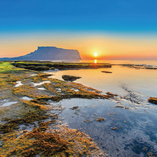 城山日出峰[UNESCO世界文化遺產],濟州地標風)/涉地可支風景區/城邑民族村/大浦柱狀節理帶(亞洲最大火山形成柱狀節理帶)/將軍石(西歸浦海岸地標)