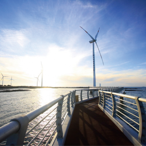 新昌風車海岸~是濟州西部近年熱門的較熱門的看海看日落的景點。沿著風車海岸道路一直走,可以看到日落在海平線的美景。連著濟州島西端的新昌風車海岸道路,沿線因為有海上風力園,可以欣賞到整齊地排著隊的風車。